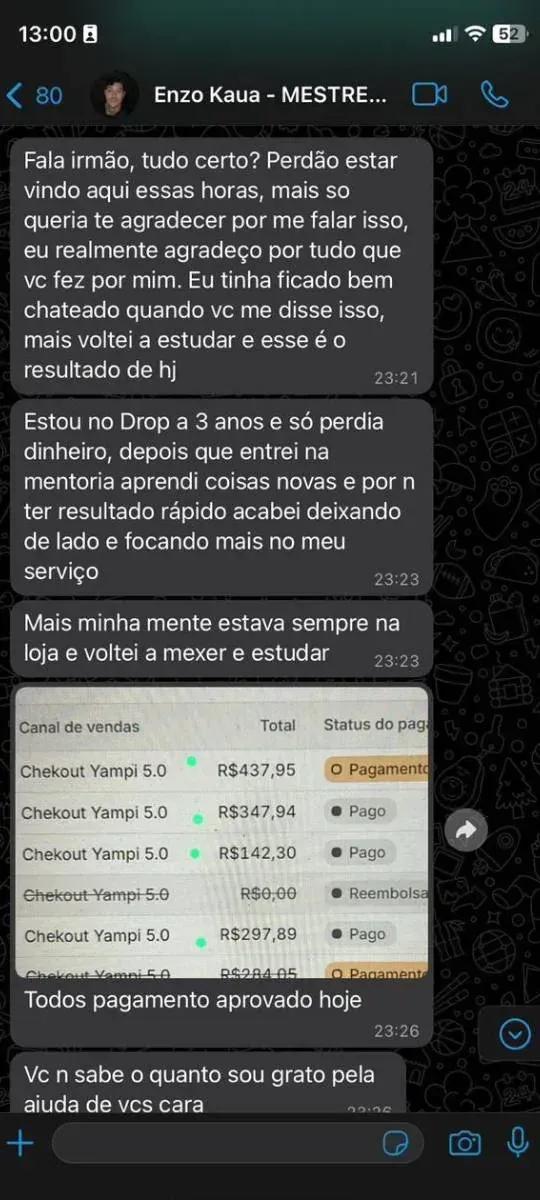 Você será mentorado por um especialista em crescimento para e-commerce, com 7 anos de atuação prática no mercado, desde 2019, estruturando operações reais, não projetos de PowerPoint ou PRINTS falsos de resultado.